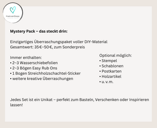 Themenboxen & Überraschungsboxen – liebevoll zusammengestellte Sets voller kreativer Materialien und Überraschungen. Ideal, um neue Produkte zu entdecken, Inspiration zu tanken oder einfach Freude zu schenken. Perfekt für Handmade-Fans und kreative Köpfe, die gern überrascht werden.