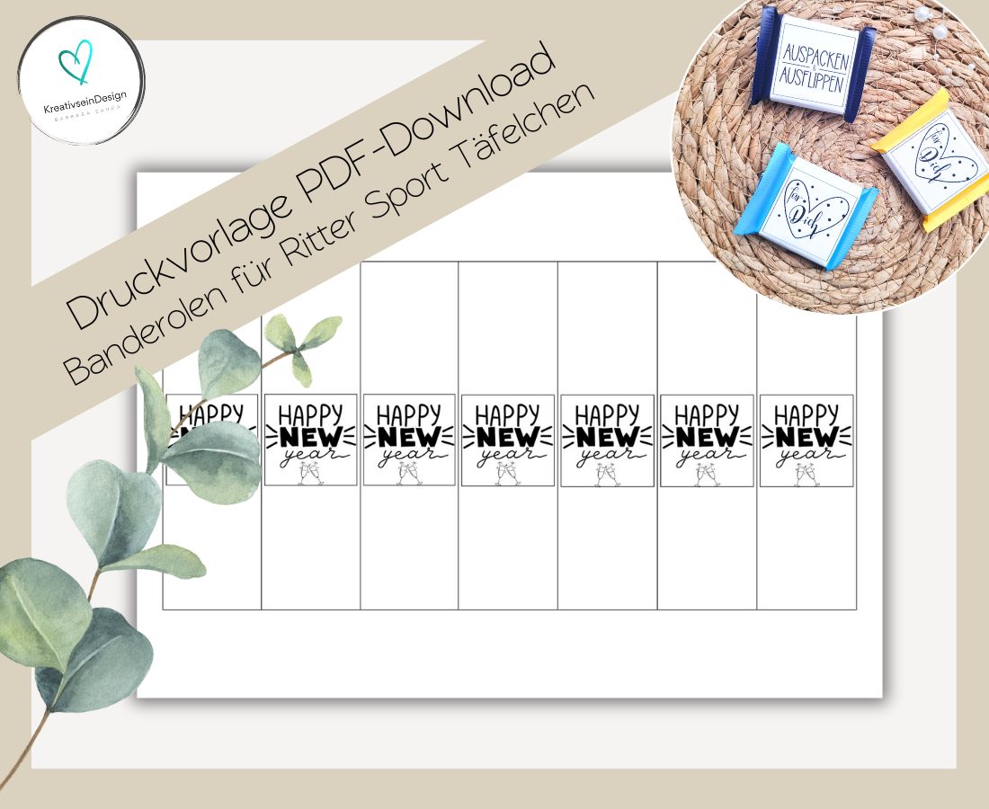 Happy New Year PDF-Download Banderolen für Mini-Rittersport Täfelchen