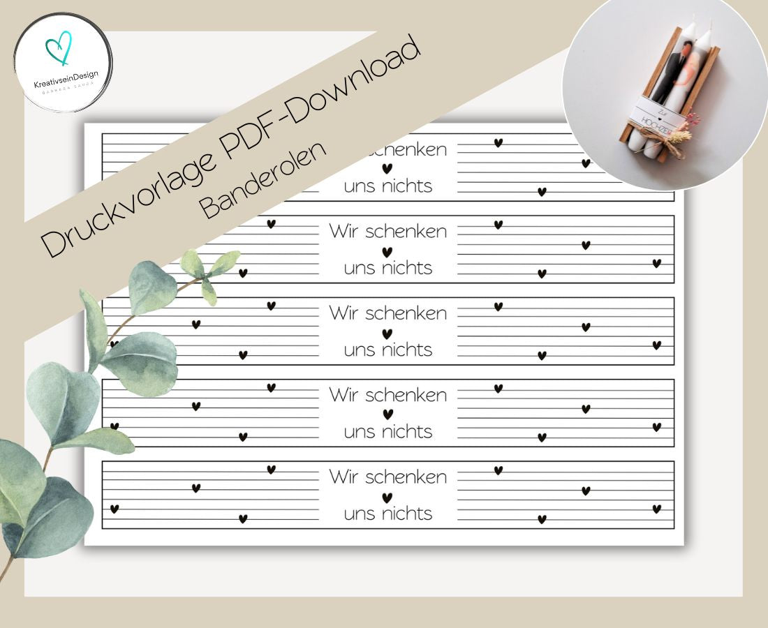 Mit dieser liebevoll gestalteten PDF-Druckvorlage kannst du im Handumdrehen wunderschöne Banderolen für deine Geschenke zaubern. Egal ob für Kerzen, Mitbringsel, Geschenksets, Körbchen oder Kerzenhalter – diese Banderolen verleihen deinen Geschenken den letzten Schliff und machen sie zu einem echten Blickfang.