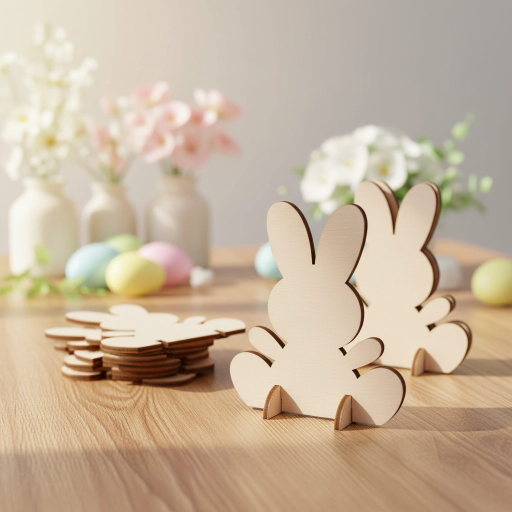 Dank ihrer glatten Oberfläche sind die Holzhasen besonders leicht zu gestalten und damit perfekt für kreative Bastelnachmittage oder liebevolle Geschenkideen zu Ostern.