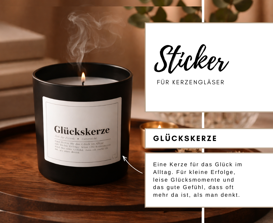 Einfach auf ein sauberes, trockenes Kerzenglas aufkleben, fest andrücken – fertig ist dein stilvolles Kerzengeschenk.