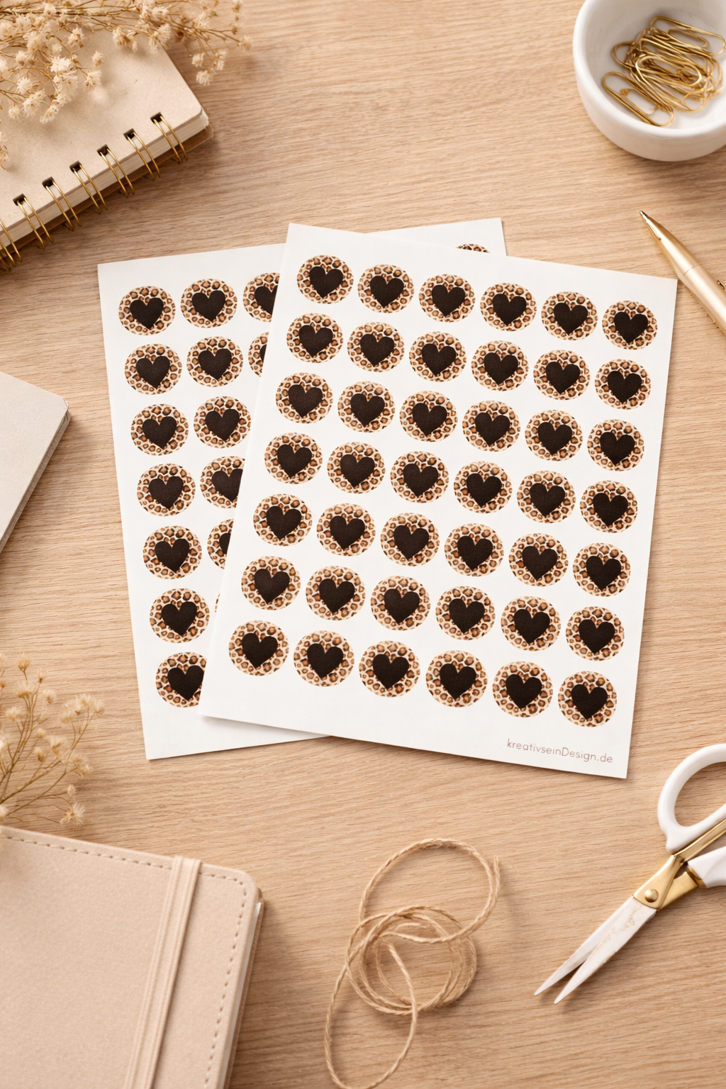 Die Kombination aus Leo-Print und schlichtem Herzmotiv wirkt modern, elegant und gleichzeitig verspielt – perfekt, um Produkten eine besondere Note zu verleihen.