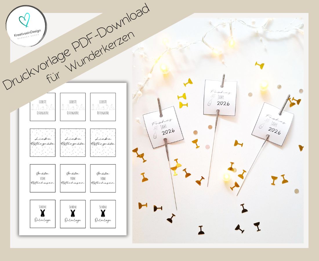 Mit dieser liebevoll gestalteten PDF-Druckvorlage verwandelst du einfache Wunderkerzen in kleine, persönliche Geschenke. Die Schildchen eignen sich perfekt als Mitbringsel, als Gastgeschenke für Feiern oder als besondere Aufmerksamkeit zu vielen Anlässen – von Geburtstag über Hochzeit bis hin zu Silvester oder kleinen Dankeschön-Momenten.