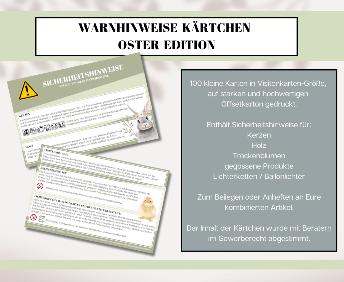 Warnhinweise kombiniert Kerzen, Holz, Trockenblumen etc. OSTERN