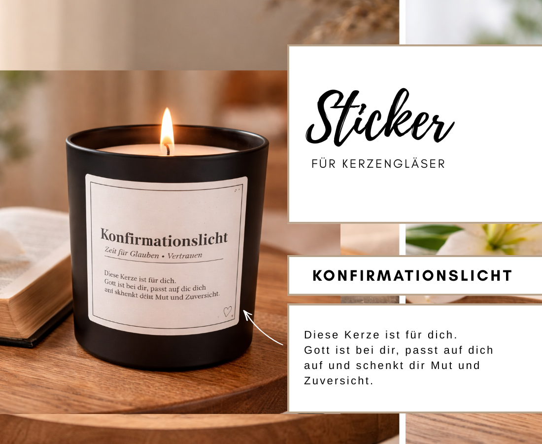 Einfach auf ein sauberes, trockenes Kerzenglas aufkleben, fest andrücken – fertig ist dein stilvolles Kerzengeschenk.